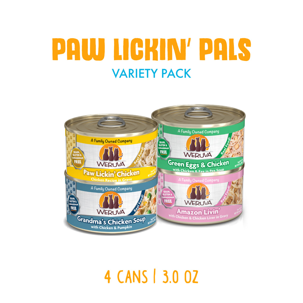 Your cat’s paw-lickin’ favorites are here, featuring boneless, skinless white breast meat chicken. Made from seriously good ingredients you can see, our variety packs are crafted to please your obligate carnivore at every meal.