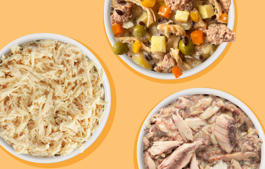 As for our paté products, we labored in the kitchen for months to find the perfect recipe for a paté that meets our standards. We use the same ingredients found in our shredded and flaked cans, like boneless, skinless chicken breast, and gently purée them into a hydrating paté. Look at our paté food bowl photos; you can see the food's ingredients!