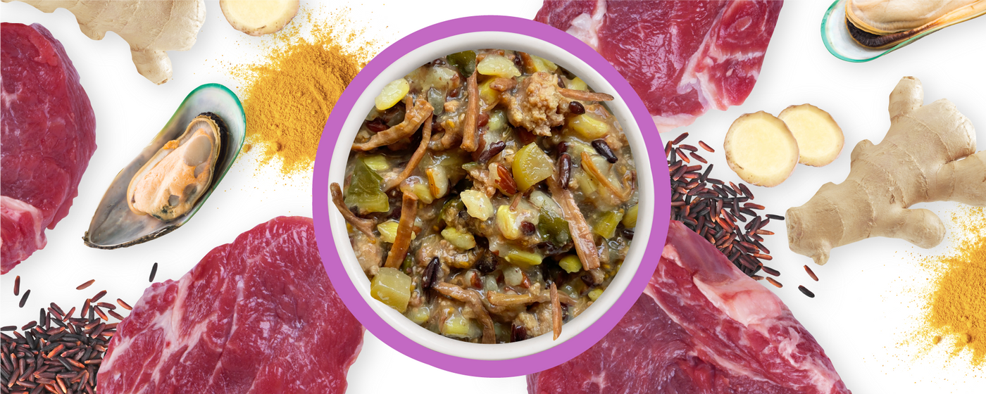 Support your dog’s joints and reduce stiffness with Awesome Bouncy! Featuring high-quality grass-fed beef and riceberry, and powered by superfoods like green-lipped mussel, fish oil, turmeric, and ginger, Awesome Bouncy supports your dog's joint health and keeps them bouncing with vitality and joy from one meal to the next.