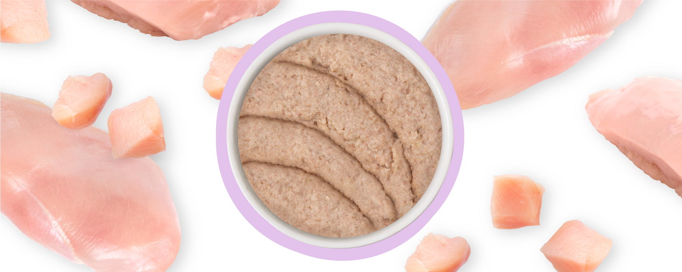 Chicken, Chicken Broth, Natural Flavor, Potato Starch, Xanthan Gum, Locust Bean Gum, Sunflower Oil, Dried Egg, Tricalcium Phosphate, Fish Oil, Choline Chloride, Taurine, Zinc Sulfate, Vitamin E Supplement, Thiamine Mononitrate (Vitamin B1), Niacin Supplement (Vitamin B3), Calcium Pantothenate, Vitamin A Supplement, Copper Sulfate, Manganese Sulfate, Riboflavin Supplement (Vitamin B2), Pyridoxine Hydrochloride (Vitamin B6), Vitamin D3 Supplement, Folic Acid, Vitamin B12 Supplement, Potassium Iodide
